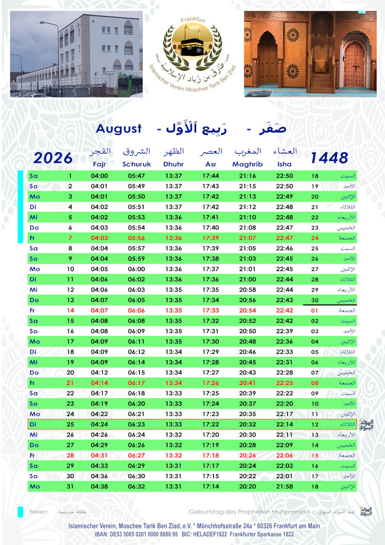 +Gebetszeiten August 2026 - Frankfurt am Main